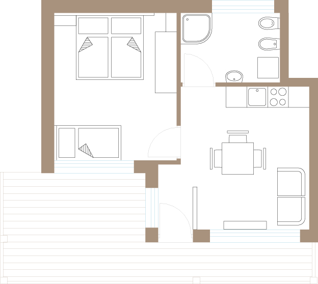 - Bad (großzügige Dusche, Waschbecken, Bidet, WC)